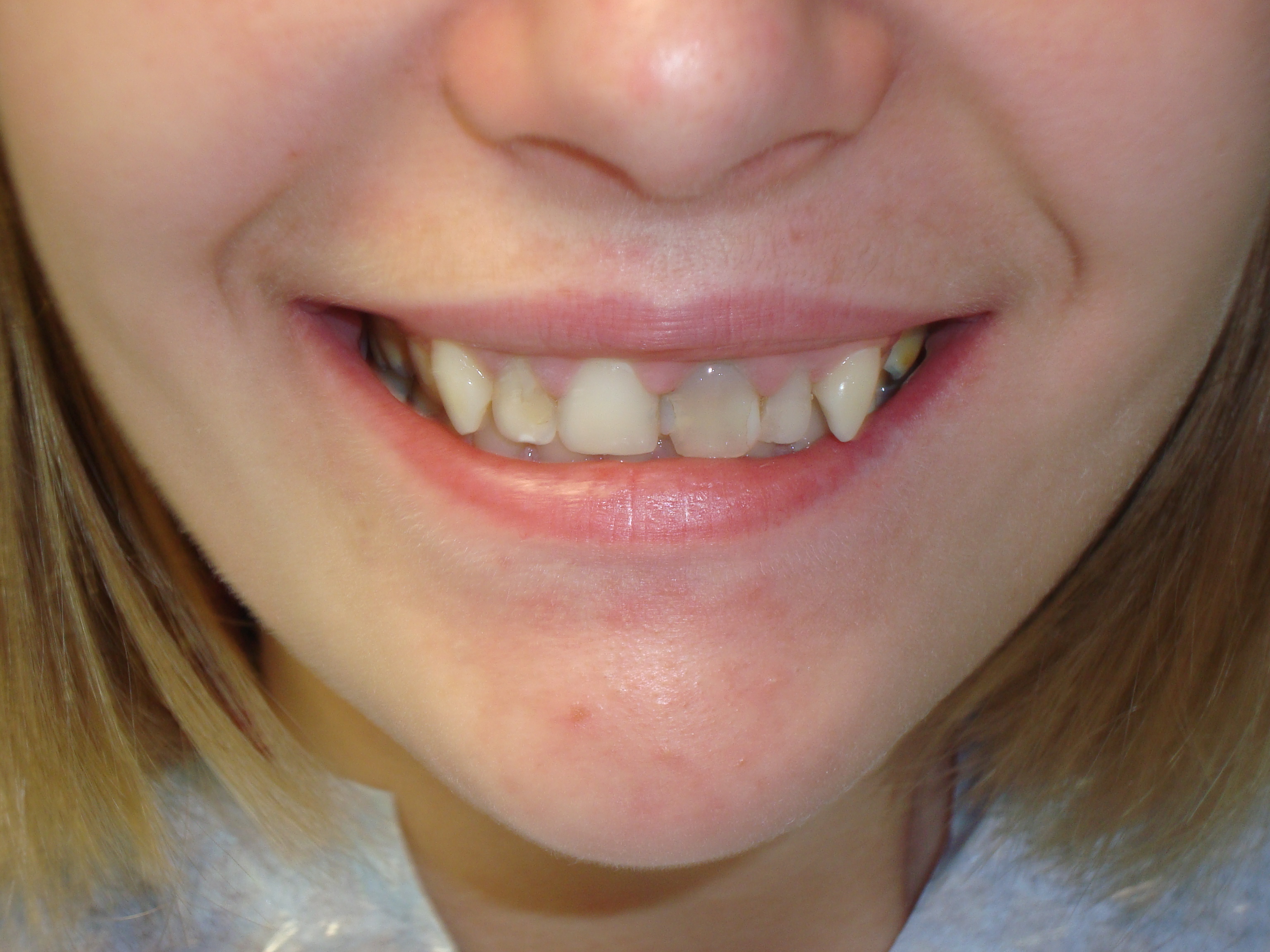 Pacienta s-a prezentat pentru refacerea zonei frontale maxilare, prezentand urmatoarele: