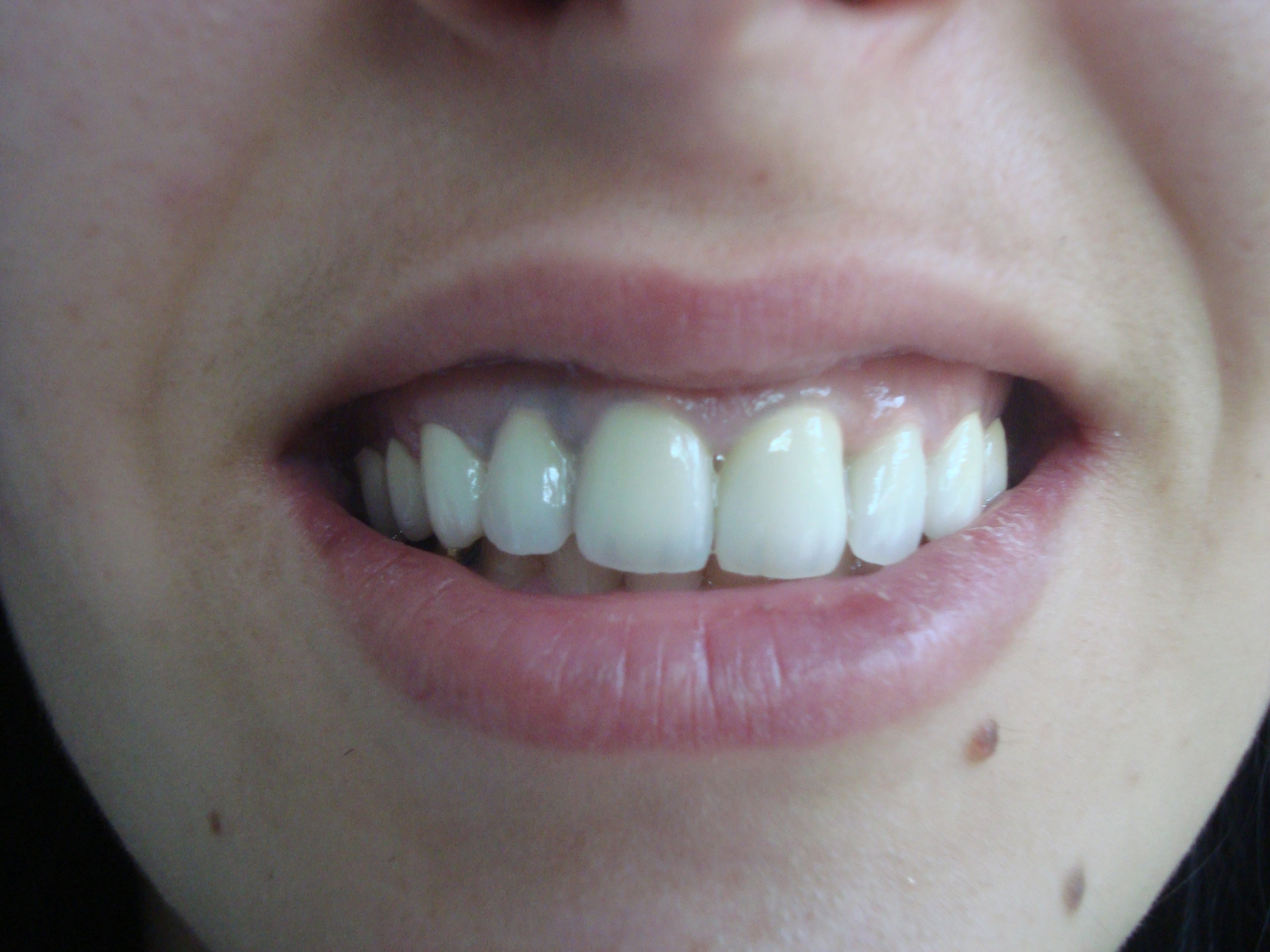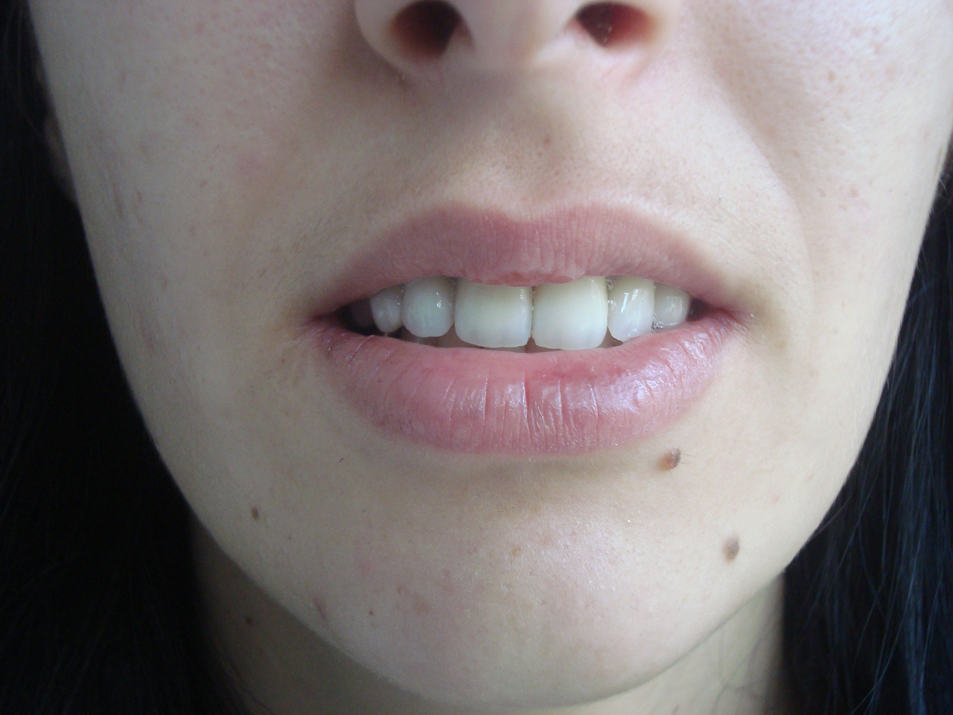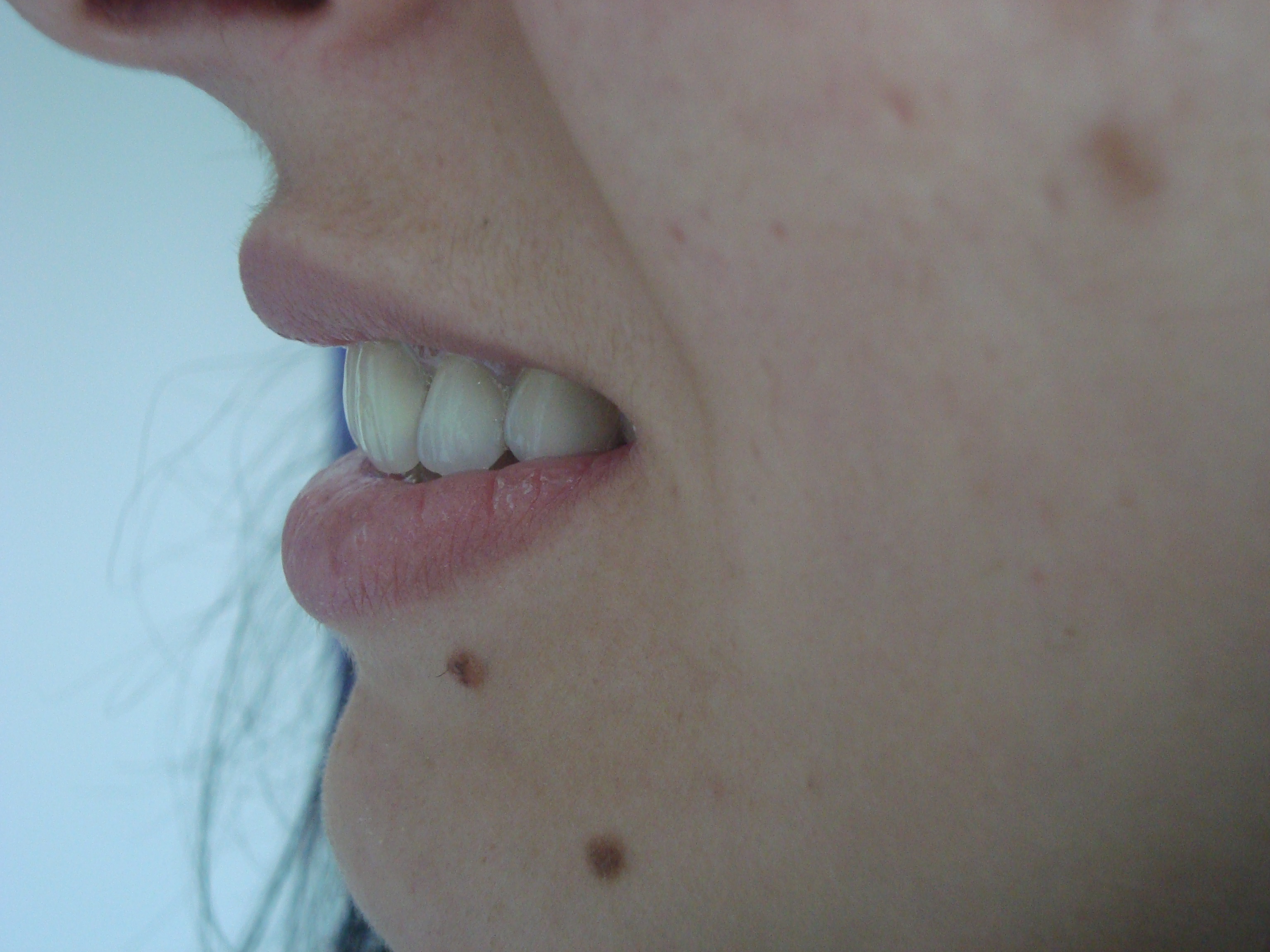 - pacienta prezenta o lucrare protetica fixa din acrilat – 1.2, 1.1, 2.1, 2.2 – necorespunzatoare si tratamente stomatologice incepute in zona laterala dreapta, neterminate;